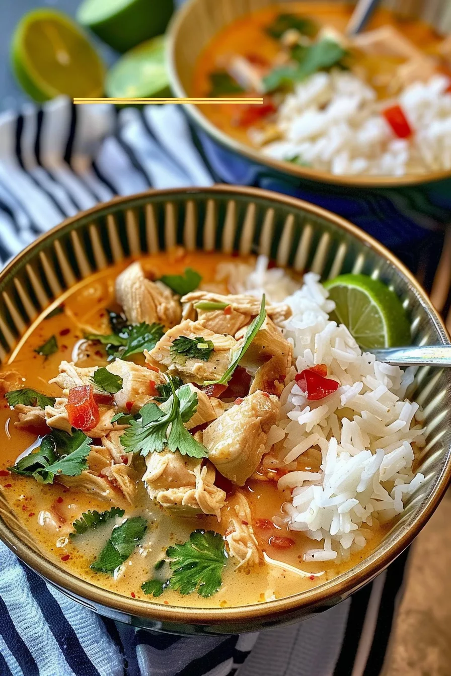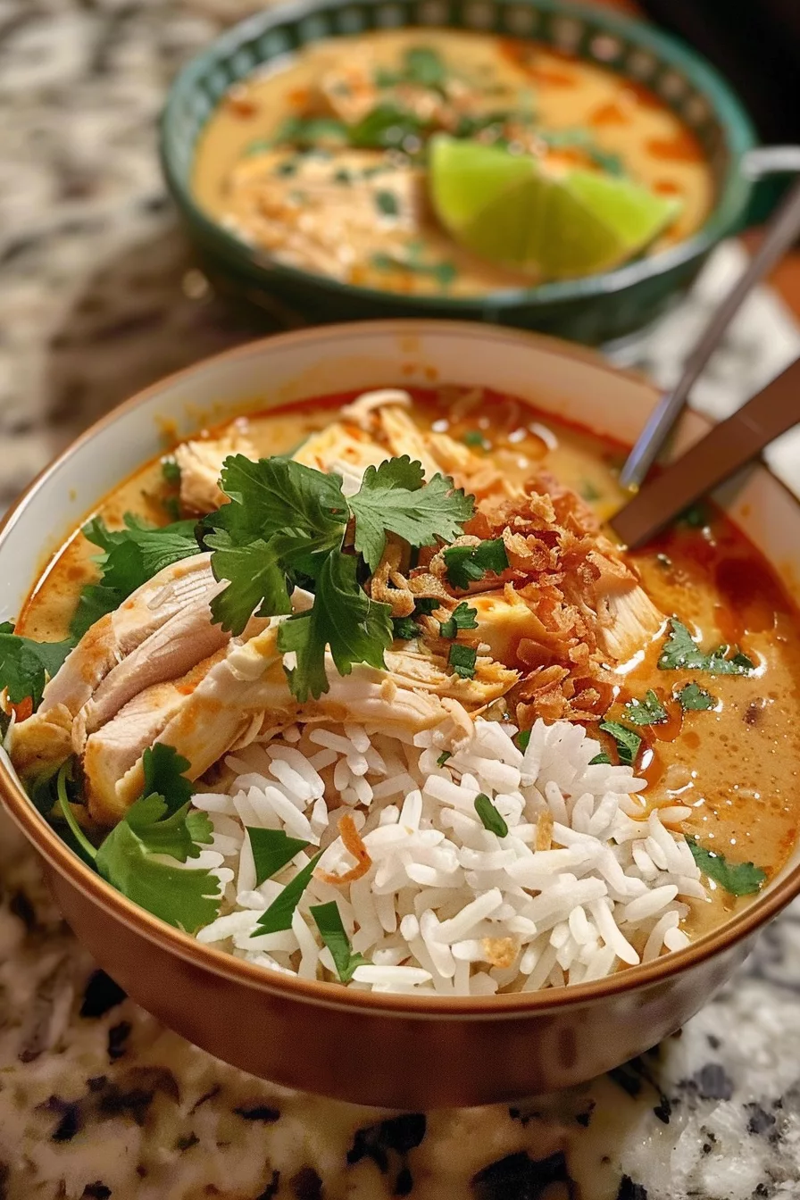 A creamy, aromatic one-pot dish with coconut milk, chicken, and rice in a savory broth, combining the bold flavors of Southeast Asian cuisine for a cozy, satisfying meal in 45 minutes.