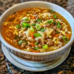 A 30-minute pork-free egg roll soup that layers brothy depth, savory egg rolls, and tender vegetables in one pot. Perfect for umami lovers.