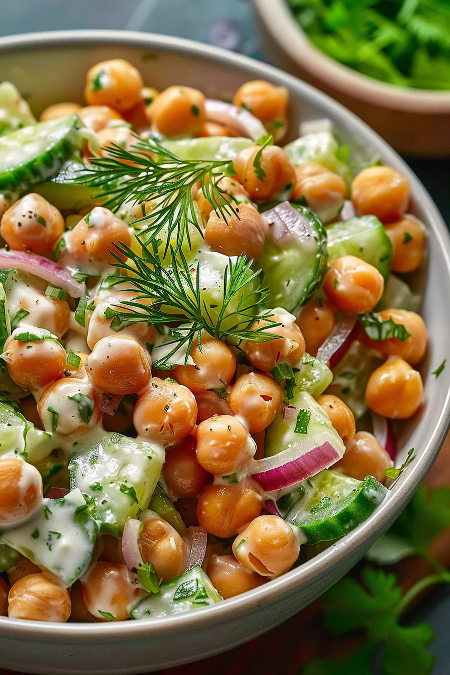“title”:”Creamy Chickpea Salad for Summer”,