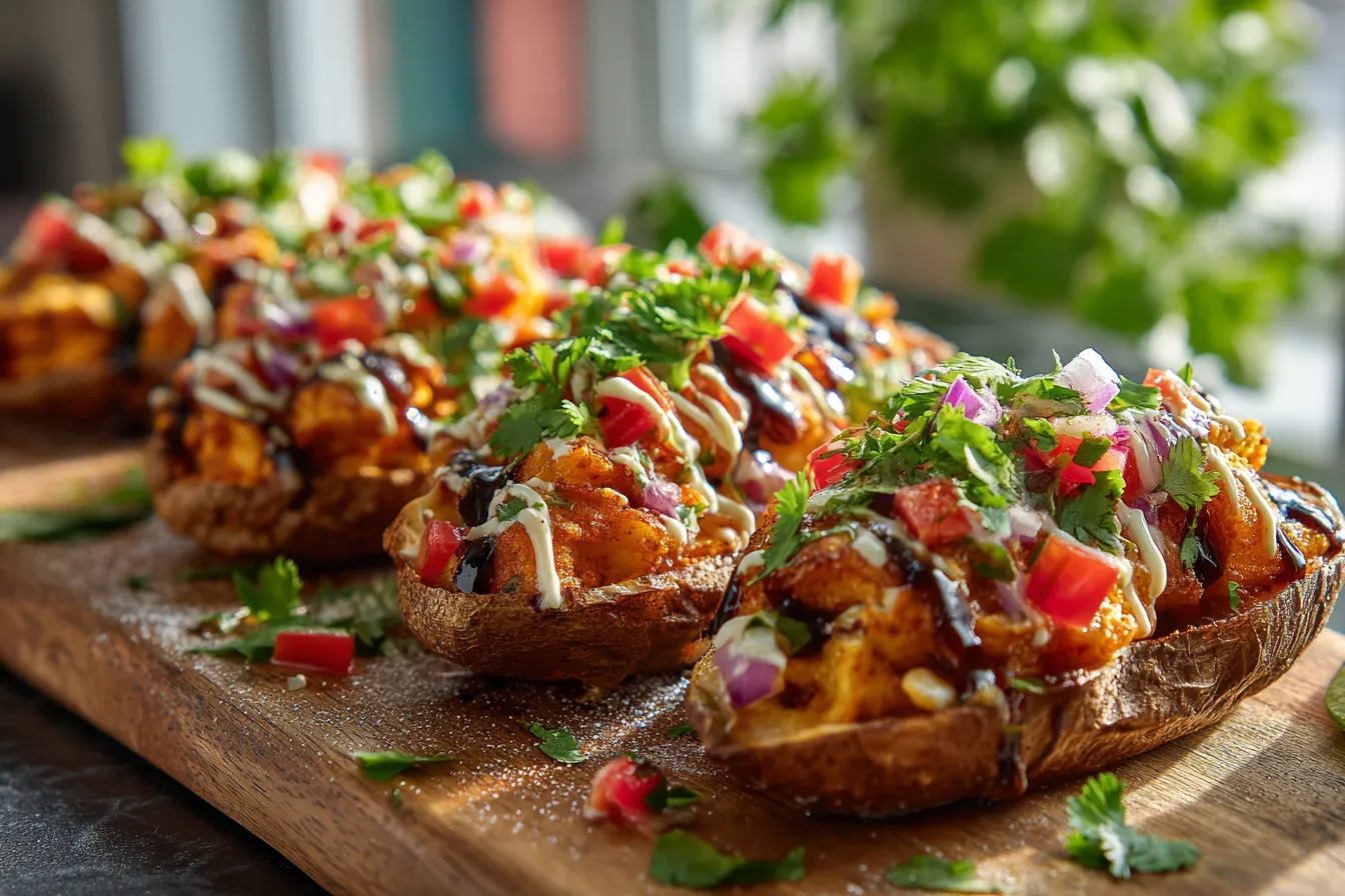 Once the cheese has melted, remove the potatoes from the oven. Drizzle some sour cream over the top and sprinkle with fresh cilantro for an added burst of flavor. Optional toppings can include jalapeños, guacamole, or diced tomatoes for an extra kick!