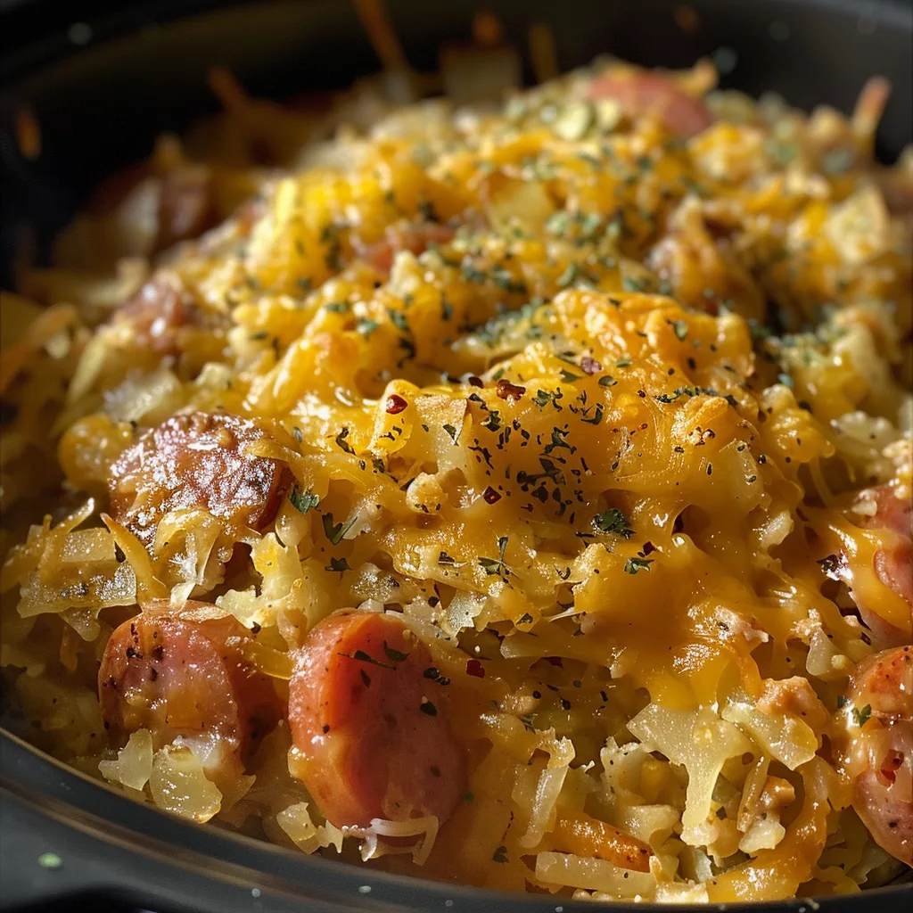 Step-by-step guide making slow cooker cheesy kielbasa hashbrown casserole provides a foolproof method for preparing a hearty, crowd-pleasing dinner without standing over a stove. This one-pot meal combines savory beef smoked sausage, crisp shredded potatoes, and a rich, velvety cheddar cheese sauce into a comforting dish. Families rely on this recipe for busy weeknights because the slow cooking process infuses every potato strand with smoky, savory essence while developing a golden cheese crust along the edges.