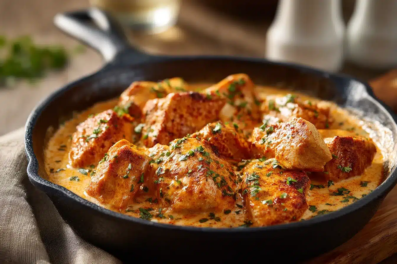 Return the chicken to the skillet, allowing it to soak up the flavors. Top with fresh chopped parsley before serving. Enjoy your vibrant and creamy Butter Chicken Skillet!